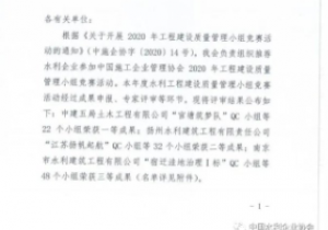各位同事:由中国水利企业协会组织的《2020年功能构成建设质量管理小组竞赛活动》已经圆满落下帷幕,由我司魏琼华同志为队长组建的“南昌路桥QC小组”所完